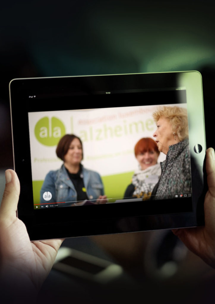 Reportage vidéo avec interviews et témoignages des participants (personnalités politiques, professionnels, bénévoles, familles des personnes souffrant de la maladie d’Alzheimer, etc.).