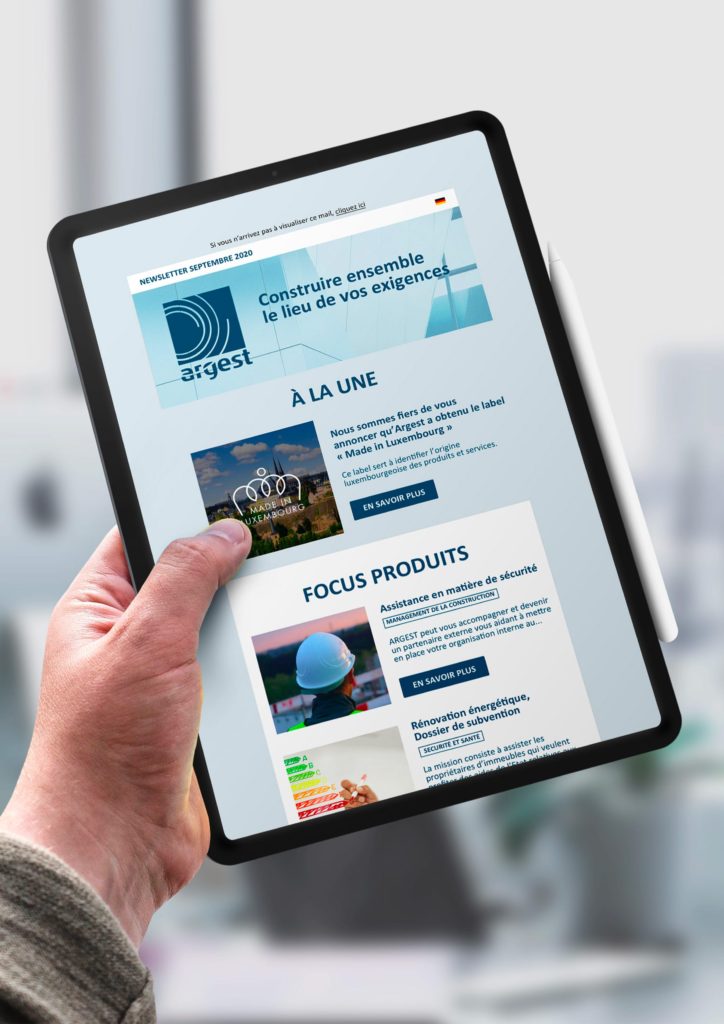 Après avoir vu la newsletter binsfeld, Argest souhaitait pouvoir offrir à ses clients le même type de communication digitale en utilisant son propre template réutilisable de façon intuitive.