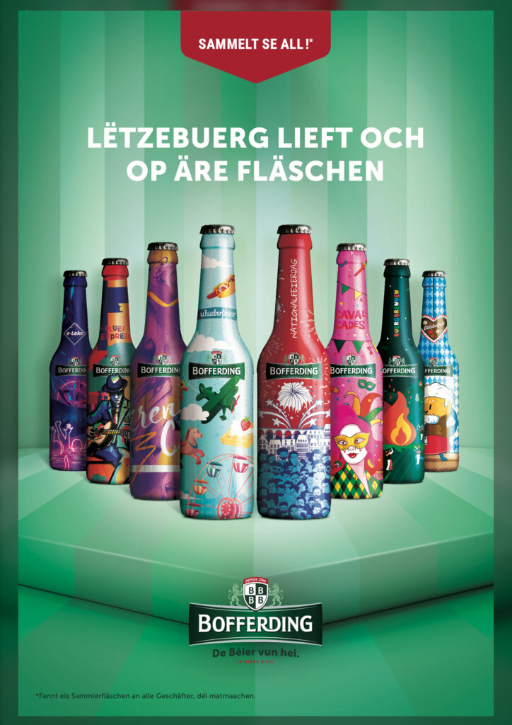 Du Buergbrennen au Siren’s Call, en passant par la Schueberfouer et le Nationalfeiertag, notre département graphique a parfaitement retranscrit le mood de huit traditions incontournables qui rythment le pays. Ces bouteilles collectors font d’ores et déjà partie des must-have de la culture grand-ducale.