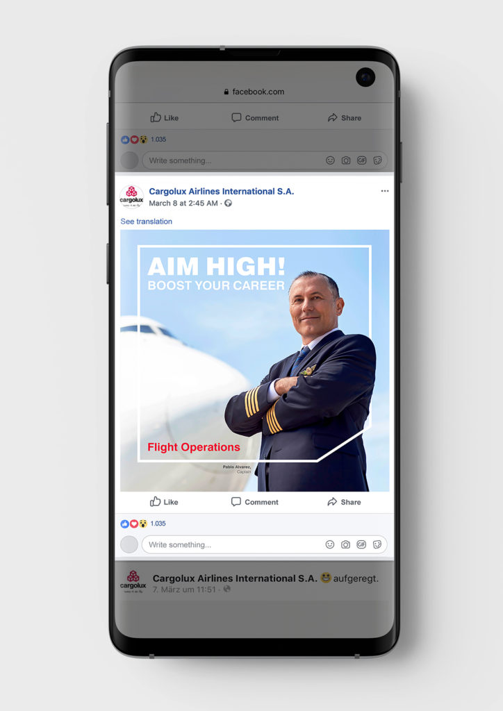 Conception et réalisation de la campagne et de l'accroche « AIM HIGH » présentant les employés de Cargolux, leurs différents métiers et leur diversité.