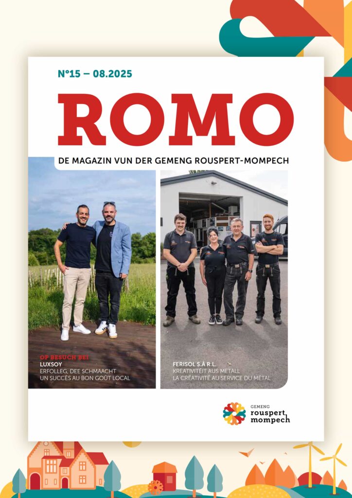 Pour cette 15e édition, la commune a choisi de mettre en lumière le Natur- & Geopark Mëllerdall, reconnu pour la richesse de son patrimoine naturel, géologique et culturel. Fidèles à l’esprit du magazine, qui vise à faire découvrir les habitants et leurs activités, nous avons aussi interviewé Ben Christmann et Eric Herber, fondateurs de LuxSoy, une entreprise engagée dans la production de tofu 100 % bio et local, ainsi que Michael Kirchen, dirigeant de Ferisol, spécialiste du travail du métal. Les textes, rédigés en luxembourgeois et traduits en français, sont accompagnés de reportages photo réalisés par notre équipe.