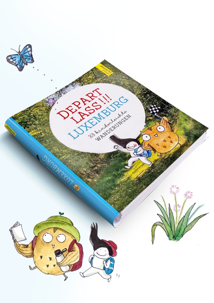 « Depart lass !!! Luxemburg – 33 kinderleichte Wanderungen » est le tout premier guide de randonnée au Luxembourg pensé pour les tout-petits. Chaque itinéraire inclut des informations pratiques : distance, point de départ, niveau de difficulté, stationnement, arrêt de bus et accessibilité aux poussettes pour que les adultes puissent tout prévoir avant de partir. Plus de 50 illustrations réalisées par Keong-A Song et 250 photos, prises par nos soins, enrichissent ce guide unique, éveillant le goût de la randonnée. Pour en savoir plus et acheter le guide, rendez-vous <a href="https://editionsguybinsfeld.lu/fr/shop/depart-lass/" target="_blank" rel="noopener noreferrer">ici</a>.