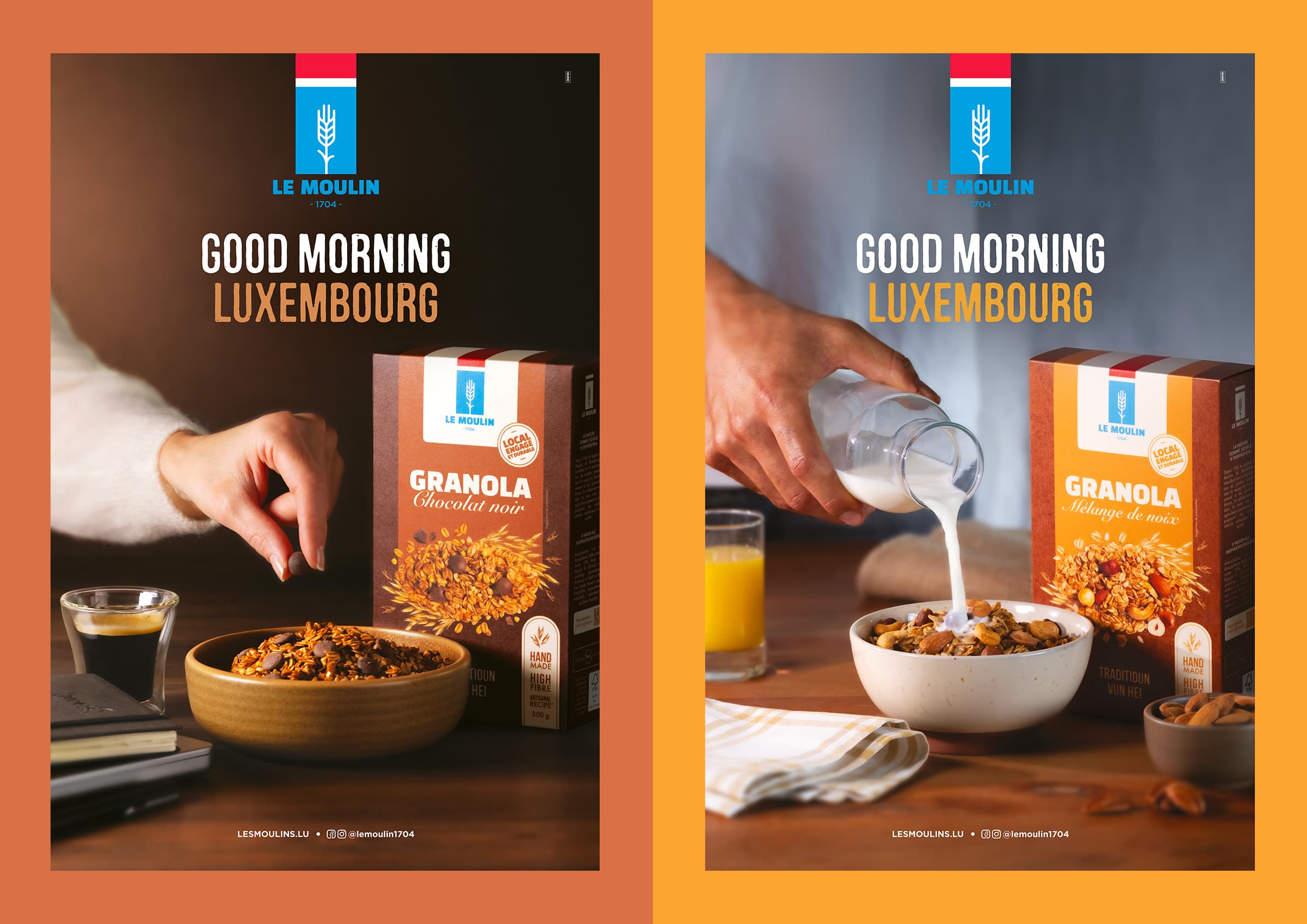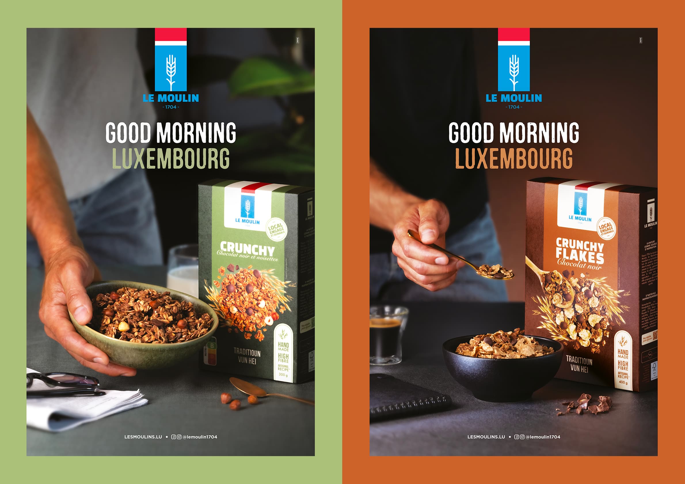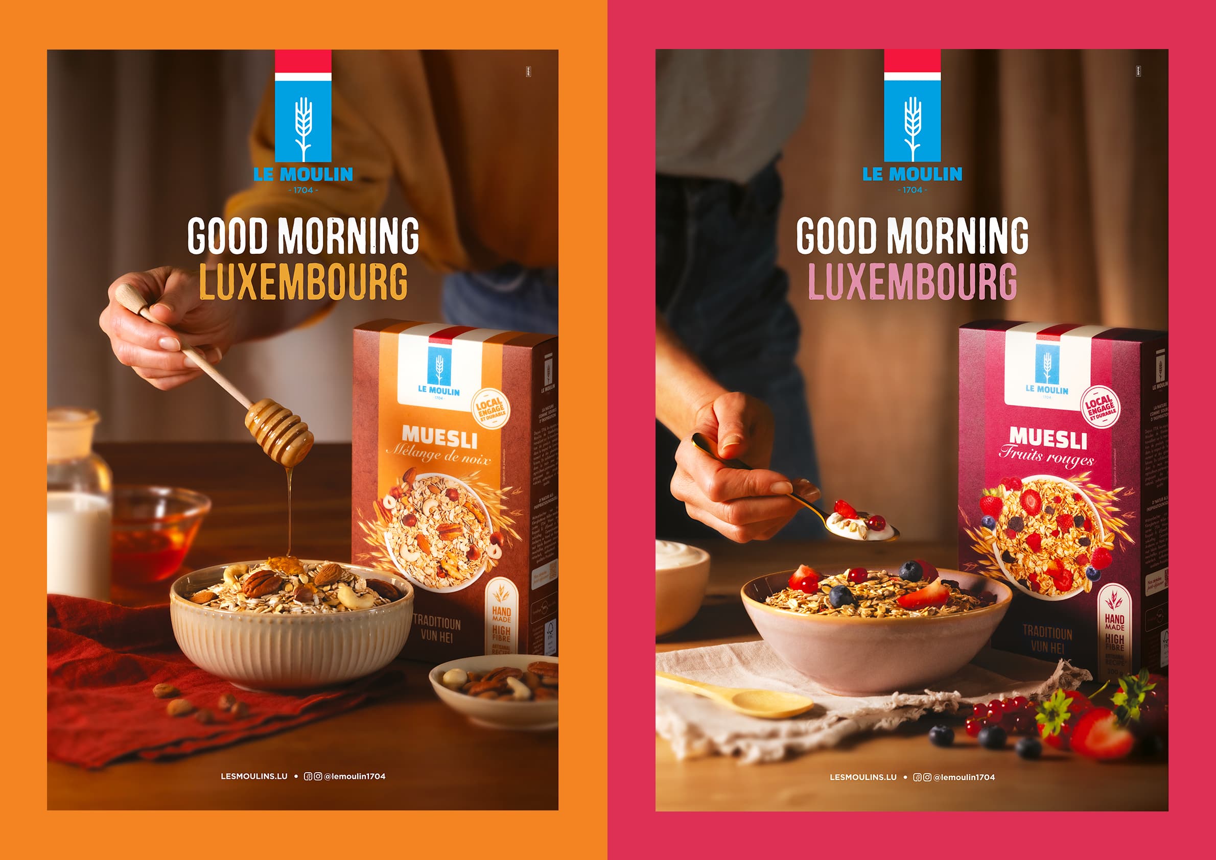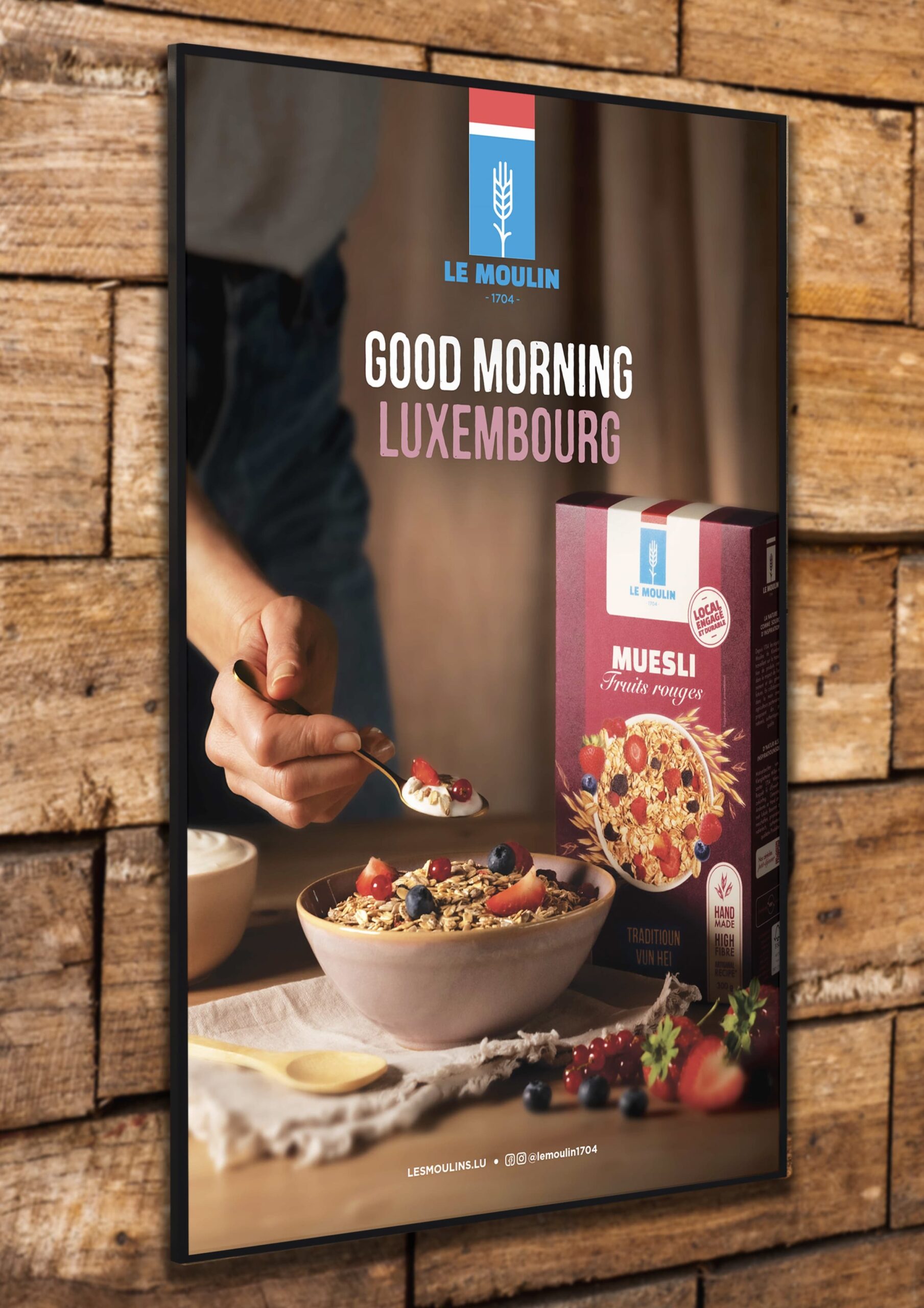 Nos équipes créatives ont imaginé une campagne multivisuelle avec l’accroche « Good Morning Luxembourg », pensée comme une véritable ode au petit-déjeuner local, qui réveille le Luxembourg. En collaboration avec le photographe Christian Wilmes, nous avons imaginé une série de huit visuels à la fois esthétiques et gourmands, mettant en avant chaque référence de la gamme dans des ambiances chaleureuses et réconfortantes. L’approche créative visait à illustrer le caractère authentique et premium du produit, tout en mettant en avant la diversité des références.