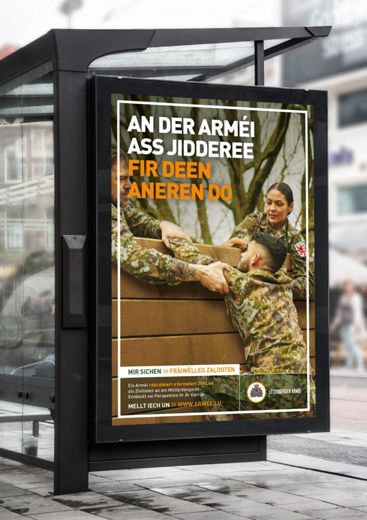 L’agence a décidé d’insuffler un positionnement attrayant et technologique à l’Armée luxembourgeoise via une campagne multi-visuels moderne, inclusive et pleine de promesses, le tout en français et luxembourgeois.