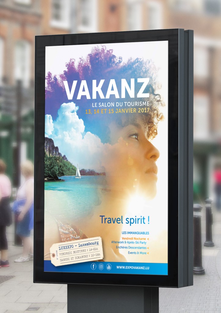 Inscrire l’événement dans l’ère digitale tout en restant dans la continuité de 2016. Convaincre les visiteurs que le salon Vakanz sera une fois de plus un évènement incontournable en matière de vacances, de destinations et de séjours.