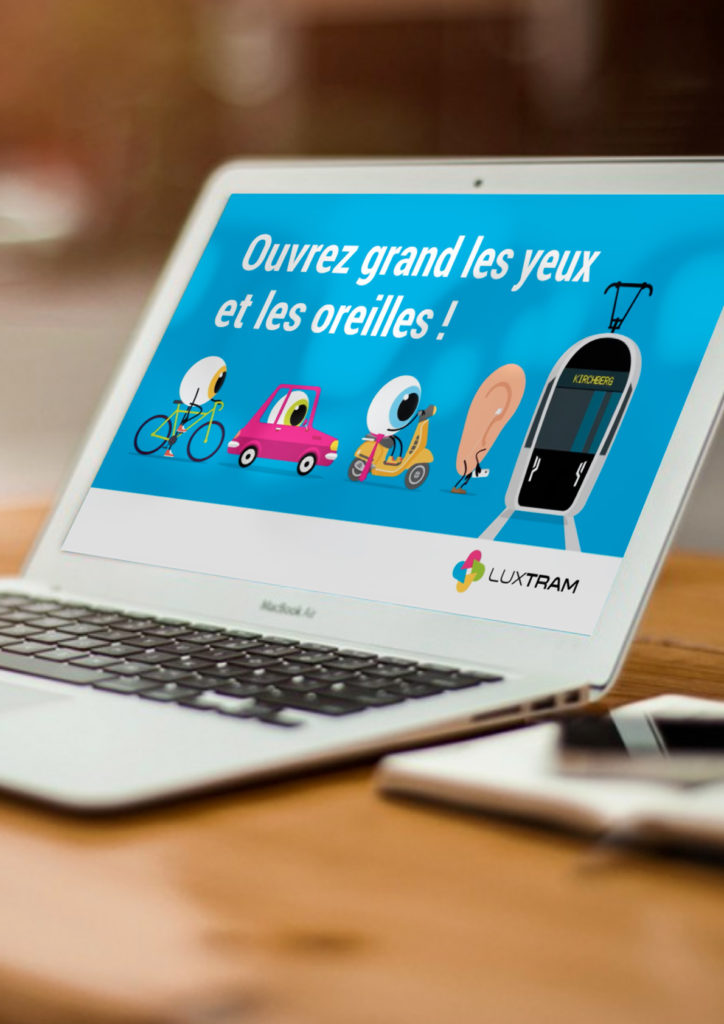 Une campagne d'affichage abris-tram, un dépliant ciblant les écoliers et piétons ainsi qu'une vidéo en motion design dans les trams.