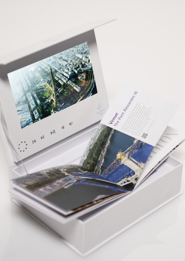 Les équipes créatives de binsfeld ont proposé une solution unique, à la hauteur de l’événement et qui va au-delà de l’invitation classique imprimée : un coffret vidéo. De plus, afin que les invités conservent un beau souvenir de leur passage aux JO, binsfeld a également réalisé une médaille gravée avec les signatures de cinq athlètes luxembourgeois : Bob Bertemes, Charles Grethen, Jeanne Lehair, Christine Majerus et Nicolas Wagner-Ehlinger.