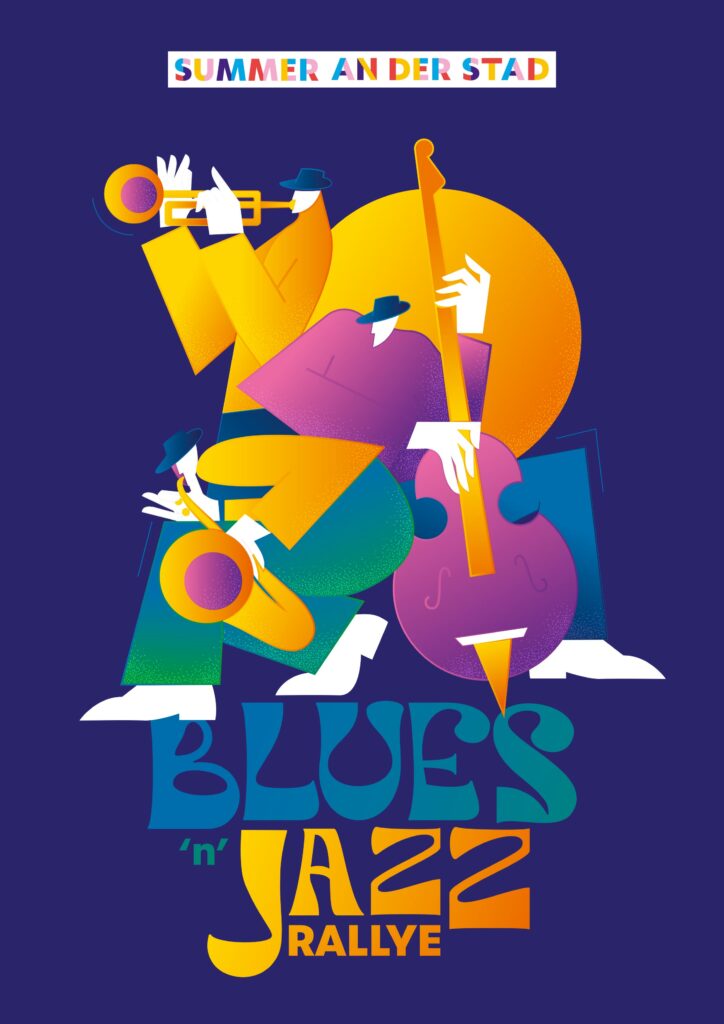 La Ville de Luxembourg souhaitait des supports de communication pour le Blues’n’Jazz Rallye, son festival annuel de musique qui attire des milliers de mélomanes chaque année dans les quartiers de Pfaffenthal, de Clausen et du Grund sous les remparts de la vieille ville de Luxembourg, un site classé au patrimoine mondial de l’UNESCO.