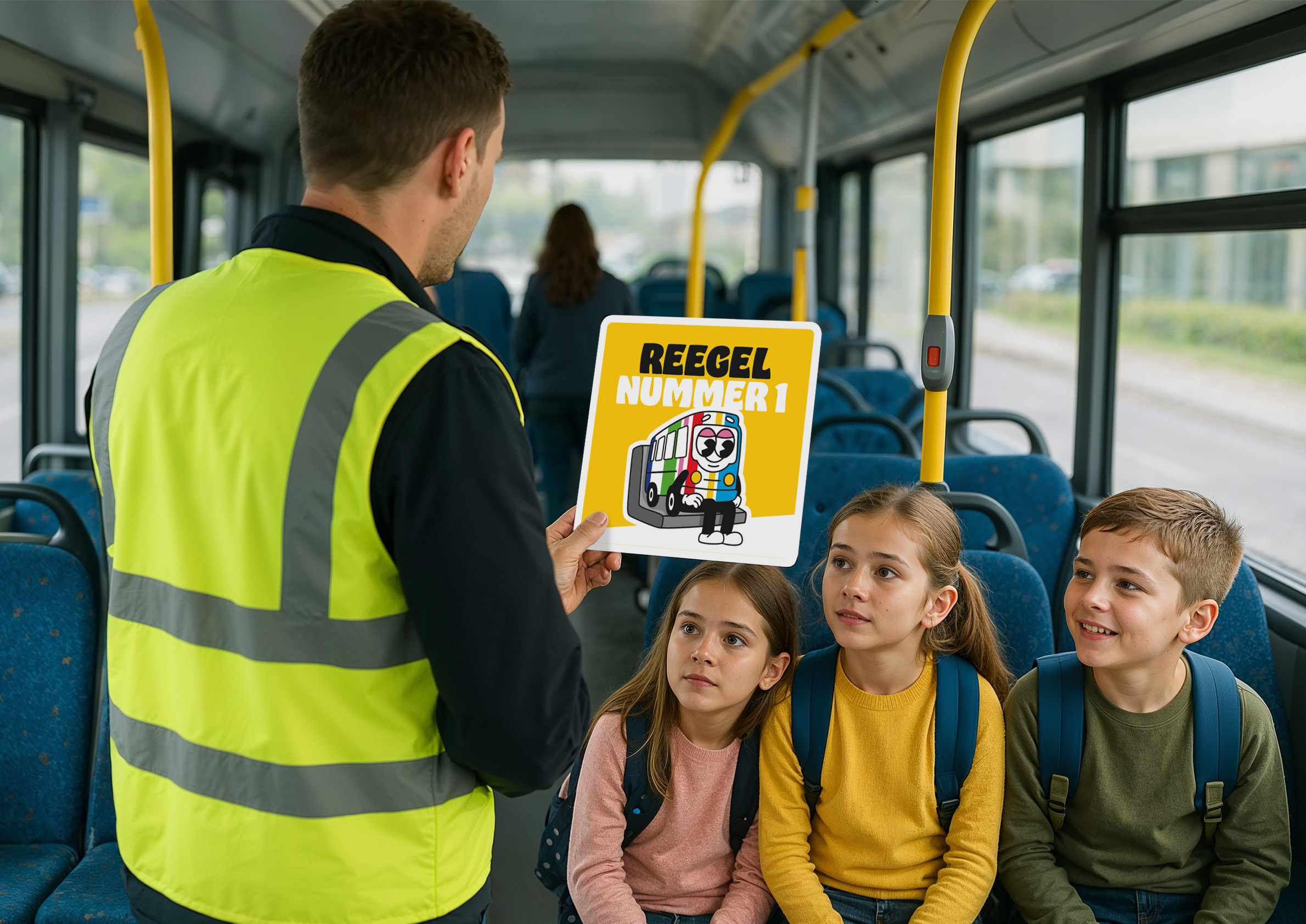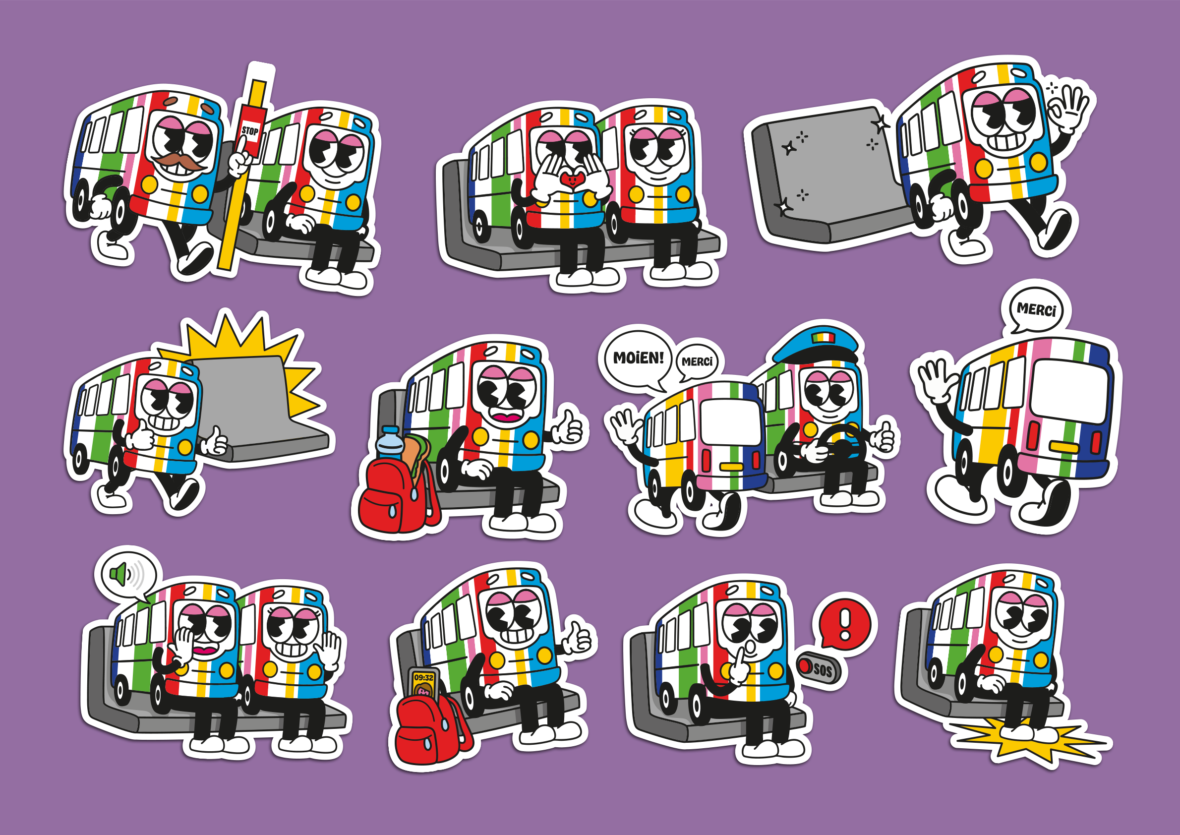 La Ville de Luxembourg a exprimé la nécessité de structurer davantage les comportements attendus des enfants dans les bus. Certains actes perturbateurs compromettaient la sécurité, la ponctualité et le confort des trajets. Pour y répondre, nous avons été mandatés pour développer une campagne de sensibilisation à destination des plus jeunes usagers, ainsi que de leurs parents. L’enjeu était de faire passer 11 règles de bonne conduite, en luxembourgeois, de manière cohérente, claire et ludique, afin de favoriser leur mémorisation et leur mise en pratique au quotidien.