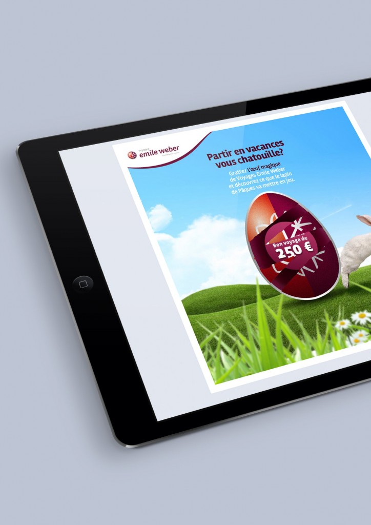 « L’œuf magique » invite les participants à gratter un œuf avec la souris ou le doigt (outil mobile), afin d’y découvrir le lot mis en jeu.